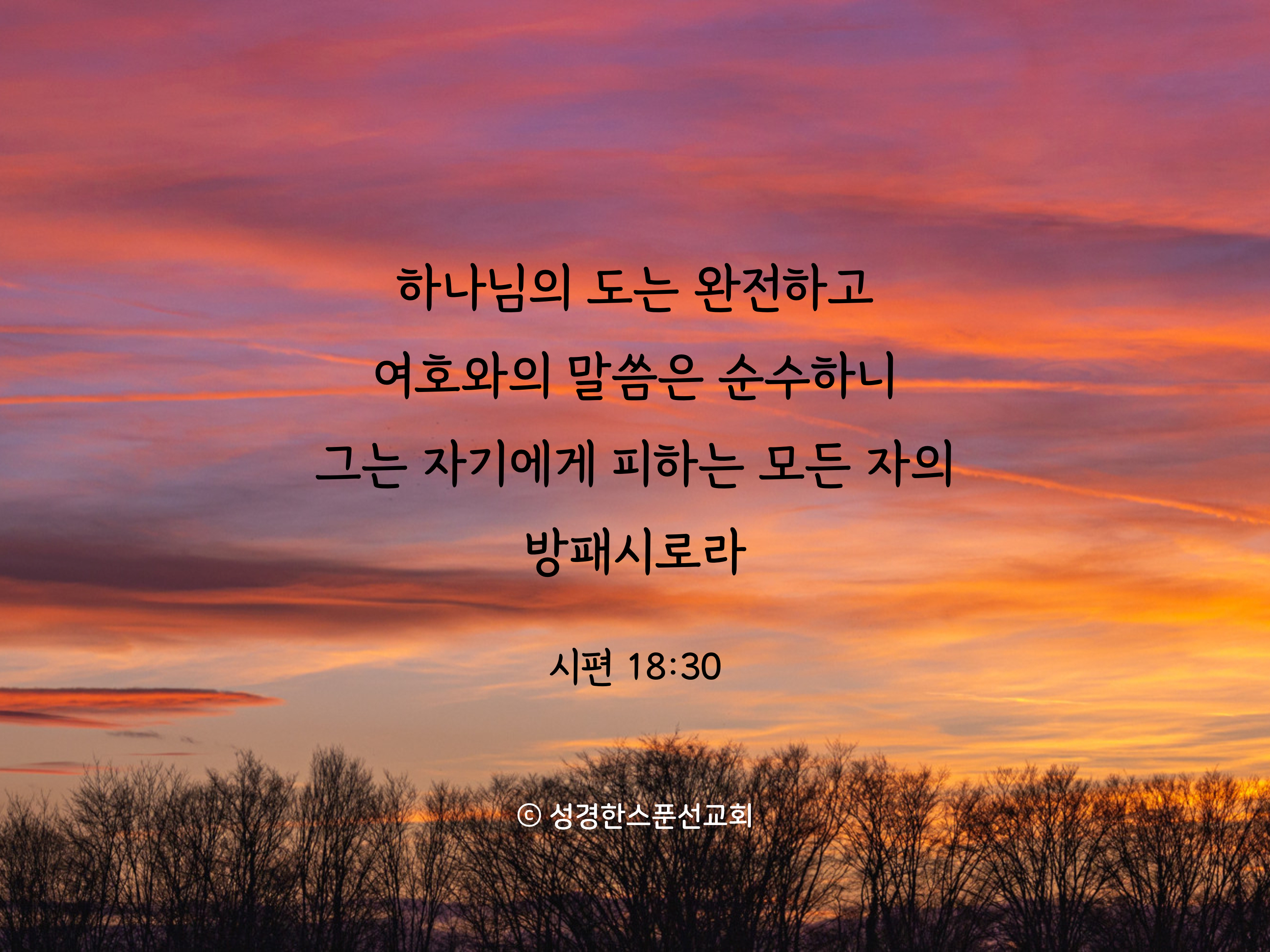 하나님의 도는 완전하고 여호와의 말씀은 순수하니 그는 자기에게 피하는 모든 자의 방패시로라