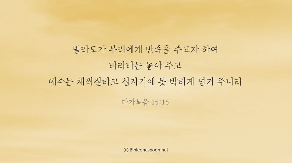 🔅오늘의 성경 한스푼/말씀카드 빌라도가 무리에게 만족을 주고자하여 bibleonespoon 2020. 4. 9. 18:45 핸드폰 배경화면, SNS 프로필 사진, 암송카드 등 개인적인 용도로는 자유롭게 활용하셔도 좋습니다 ♡ 공유하기 게시글 관리 성경한스푼선교회 '🔅오늘의 성경 한스푼/말씀카드' Related Articles 이 사람은 진실로 닭이 곧 두 번째 울더라 이 백성이 주께서 선한 것이 무엇임을 네게 보이셨나니