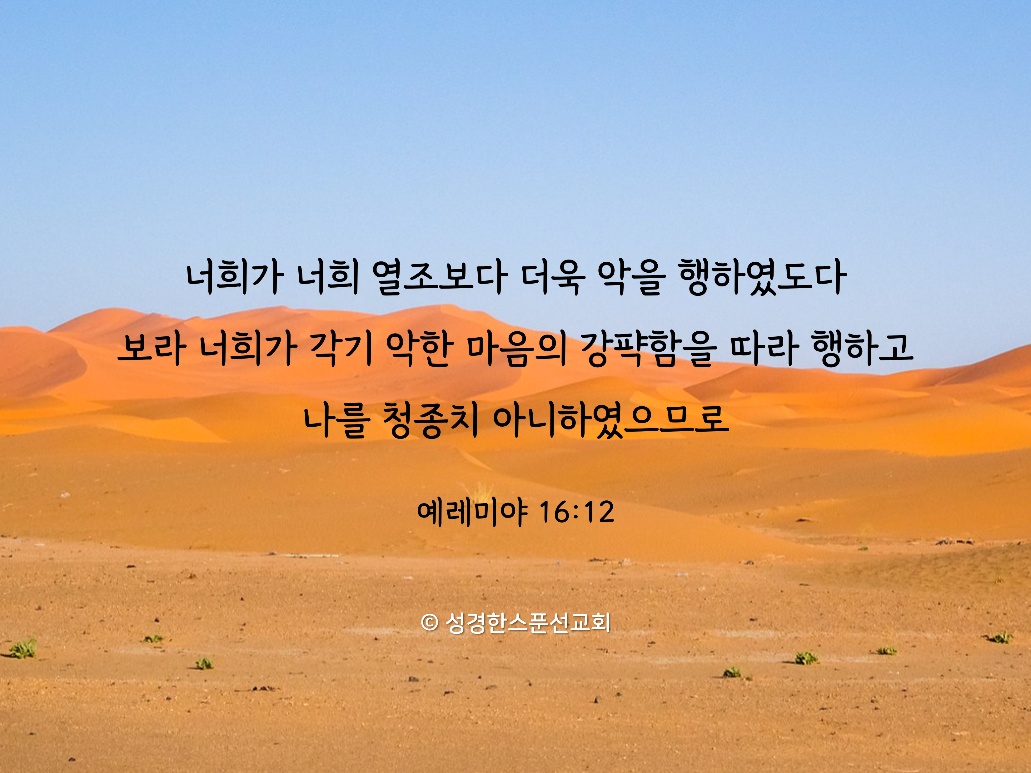 🔅오늘의 성경 한스푼/말씀카드 너희가 너희 열조보다 더욱 악을 행하였도다 보라 너희가 각기 악한 마음의 강퍅함을 따라 행하고 나를 청종치 아니하였으므 bibleonespoon 2023. 8. 7. 08:32 핸드폰 배경화면, SNS 프로필 사진, 암송카드 등 개인적인 용도로는 자유롭게 활용하셔도 좋습니다. (2-3초간 꾹 누르시면 이미지 저장이 가능합니다♡) 공유하기 게시글 관리 성경한스푼선교회 '🔅오늘의 성경 한스푼/말씀카드' Related Articles 여호와를 의지하며 여호와를 의뢰하는 그 사람은 복을 받을 것이라 그들에게 내 손과 내 능을 알려서 그들로 내 이름이 여호와인 줄 알게 하리라 내 눈이 밤낮으로 그치지 아니하고 눈물을 흘리리니 이는 처녀 딸 내 백성이 큰 파멸, 중한 상처로 말미암아 망함이라 그들이 어그러진 길을 사랑하여 그 발을 금하지 아니하므로 나 여호와가 그들을 받지 아니하고 이제 그들의 죄를 기억하고 그 죄를 벌하리