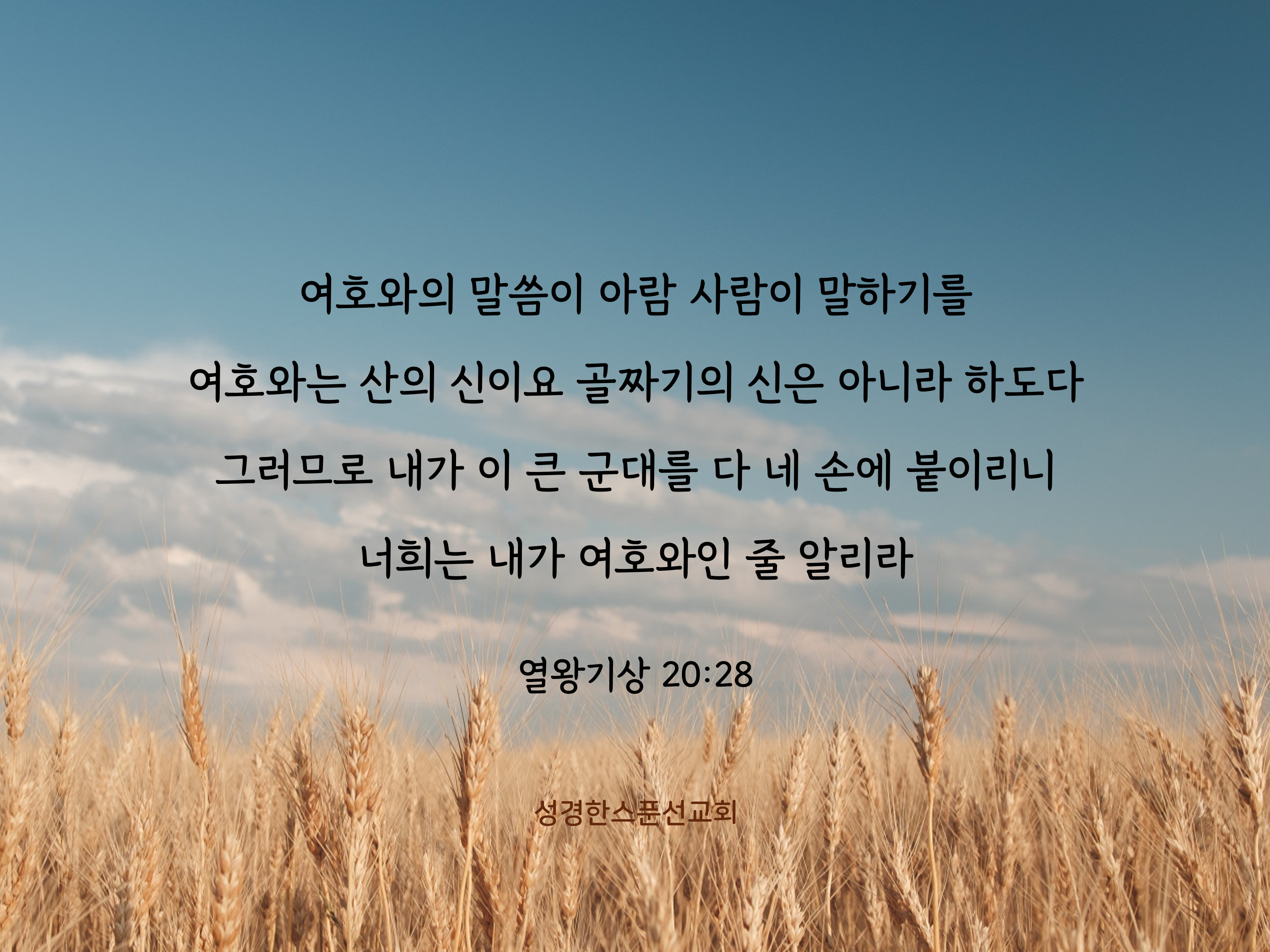 🔅오늘의 성경 한스푼/말씀카드 내가 이 큰 군대를 다 네 손에 붙이리니 너희는 내가 여호와인 줄 알리라 bibleonespoon 2023. 10. 24. 08:35 공유하기 게시글 관리 성경한스푼선교회 '🔅오늘의 성경 한스푼/말씀카드' Related Articles 나봇이 아합에게 말하되 내 열조의 유업을 왕에게 주기를 여호와께서 금하실찌로다 하니 내가 멸하기로 작정한 사람을 네 손으로 놓았은즉 네 목숨은 저의 목숨을 대신하고 네 백성은 저의 백성을 대신하리라 내가 오늘 저희를 네 손에 붙이리니 너는 내가 여호와인줄 알리라 하셨나이다 아사가 그 조상 다윗 같이 여호와 보시기에 정직하게 행하여