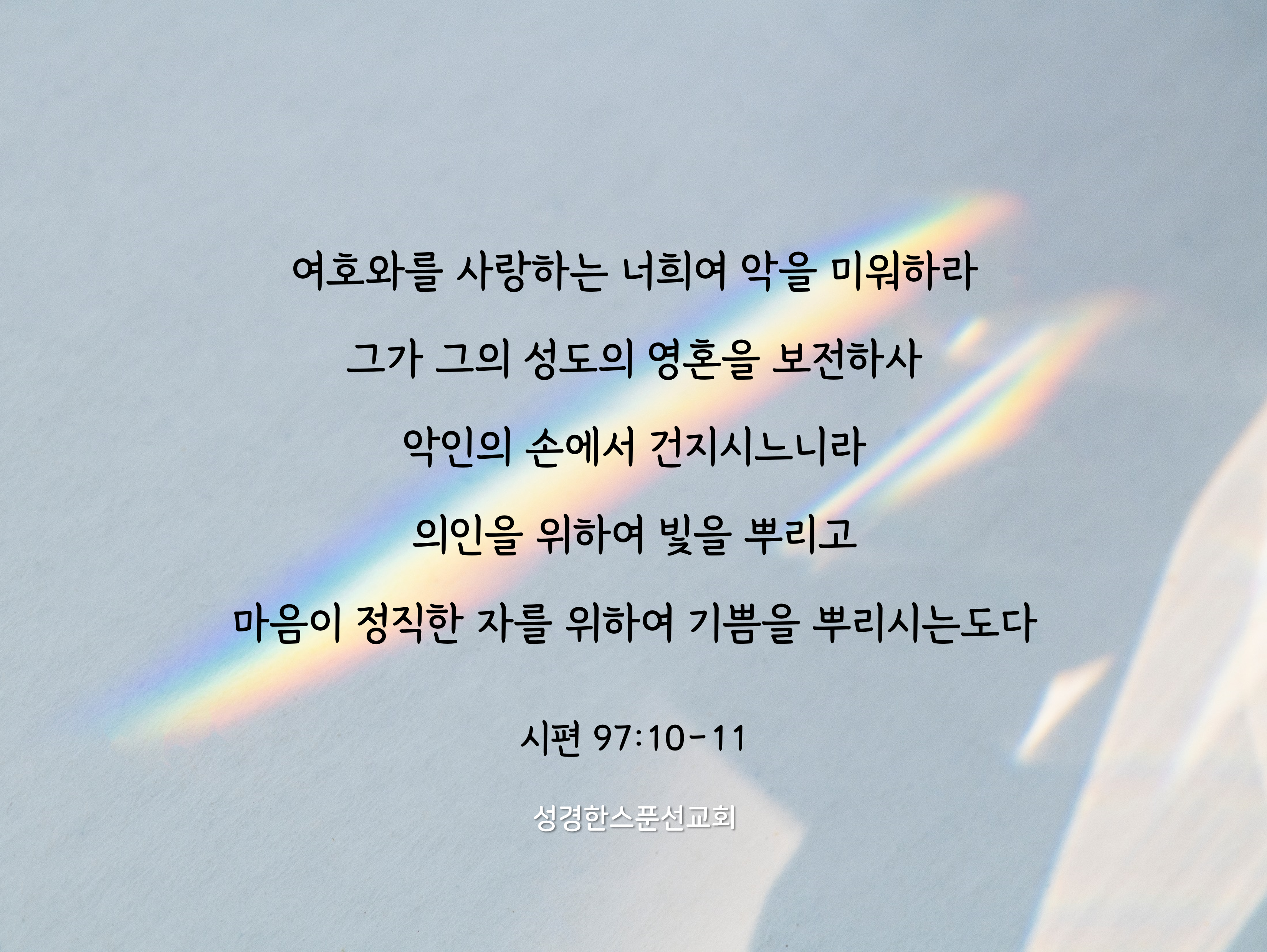 🔅오늘의 성경 한스푼/말씀카드 의인을 위하여 빛을 뿌리고 마음이 정직한 자를 위하여 기쁨을 뿌리시는도다 bibleonespoon 2023. 12. 29. 06:26 공유하기 게시글 관리 성경한스푼선교회 '🔅오늘의 성경 한스푼/말씀카드' Related Articles 당시에 선악을 분별하지 못하던 너희의 자녀들도 그리로 들어갈 것이라 내가 그 땅을 그들에게 주어 산업이 되게 하리라 그는 너희보다 먼저 그 길을 가시며 장막 칠 곳을 찾으시고 밤에는 불로, 낮에는 구름으로 너희가 갈 길을 지시하신 자이시니라 그가 의로 세계를 심판하시며 그의 진실하심으로 백성을 심판하시리로다 오라 우리가 굽혀 경배하며 우리를 지으신 여호와 앞에 무릎을 꿇자