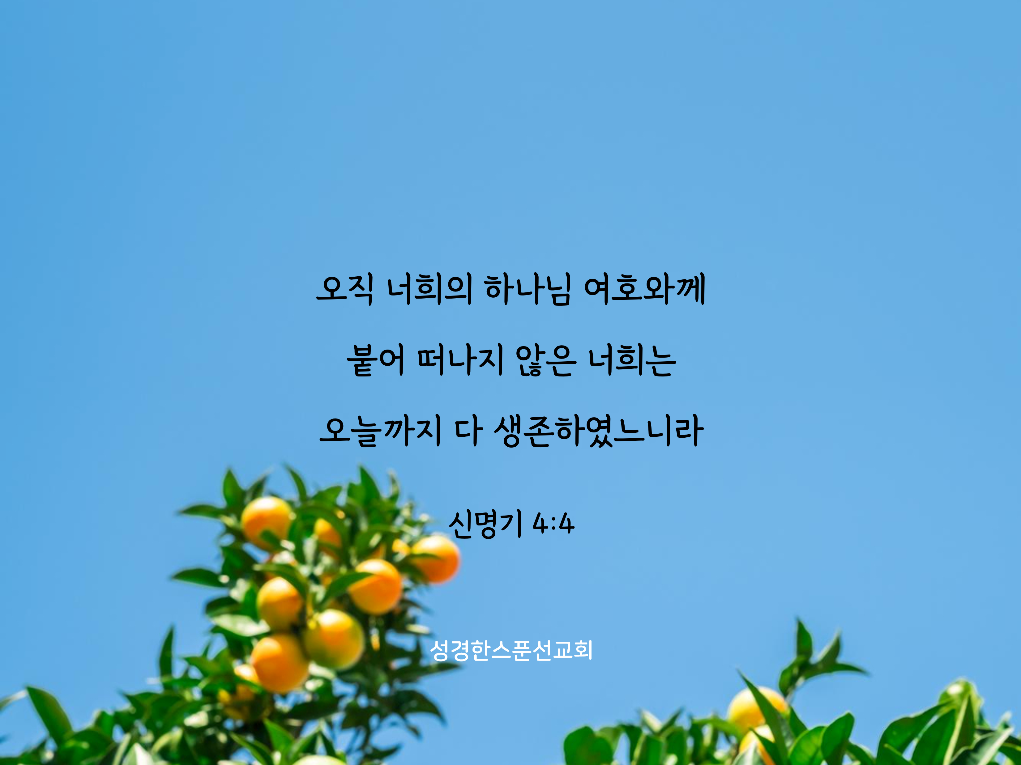 🔅오늘의 성경 한스푼/말씀카드 오직 너희의 하나님 여호와께 붙어 떠나지 않은 너희는 오늘까지 다 생존하였느니라 bibleonespoon 2024. 1. 8. 08:30 공유하기 게시글 관리 성경한스푼선교회 '🔅오늘의 성경 한스푼/말씀카드' Related Articles 그런즉 너는 오늘 위로 하늘에나 아래로 땅에 오직 여호와는 하나님이시요 다른 신이 없는 줄을 알아 명심하고 네 하나님 여호와꼐서 금하신 어떤 형상의 우상도 조각하지 말라 너는 이제부터 그의 땅을 차지하여 기업으로 삼으라 하시더니 그들의 땅은 한 발자국도 너희에게 주지 아니하리니 이는 내가 세일 산을 에서에게 기업으로 주었음이라