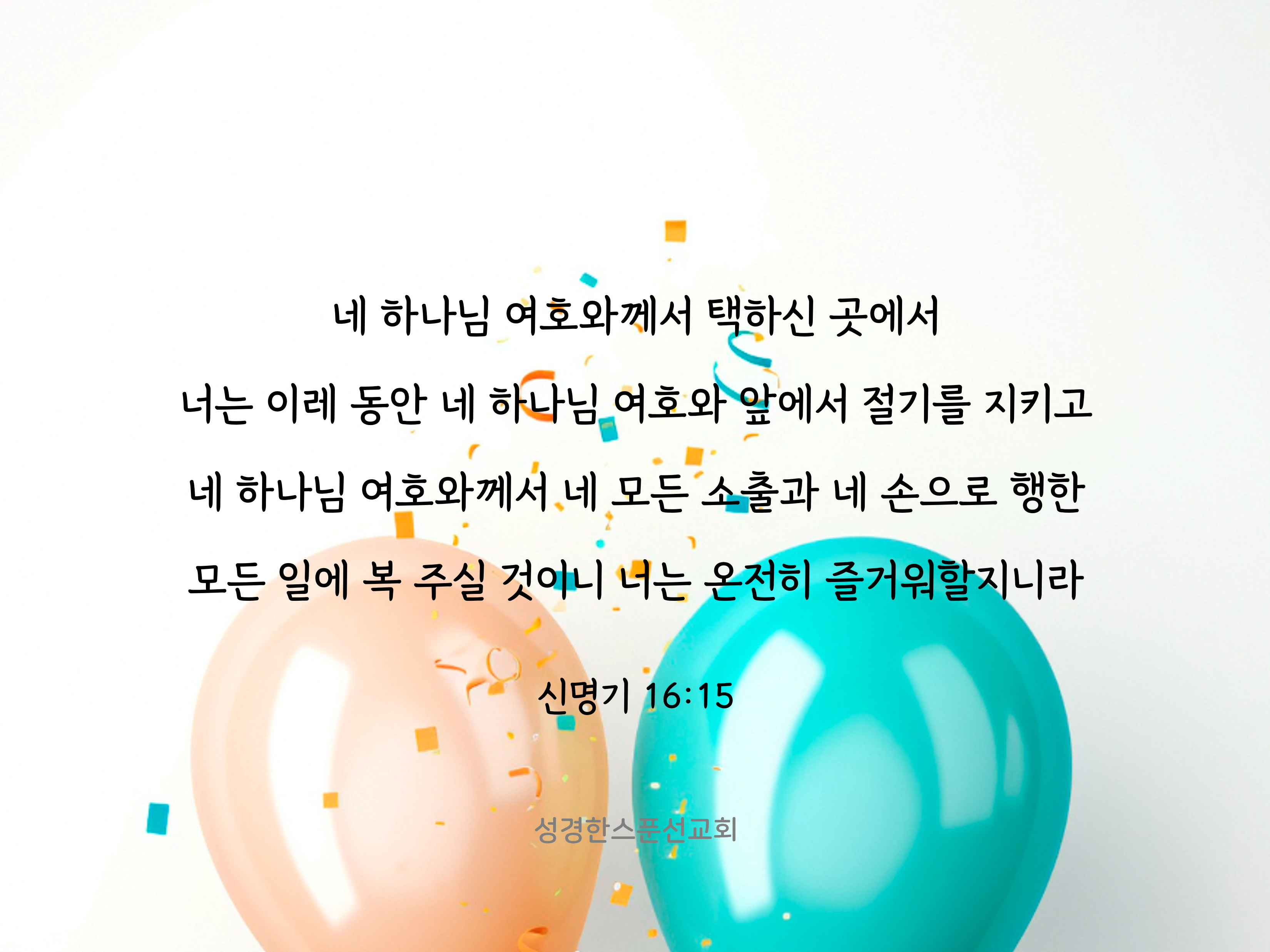 🔅오늘의 성경 한스푼/말씀카드 네 하나님 여호와께서 네 모든 소출과 네 손으로 행한 모든 일에 복 주실 것이니 너는 온전히 즐거워할지니라 bibleonespoon 2024. 1. 31. 08:36 공유하기 게시글 관리 성경한스푼선교회 '🔅오늘의 성경 한스푼/말씀카드' Related Articles 평생에 자기 옆에 두고 읽어 그의 하나님 여호와 경외하기를 배우며 너는 마땅히 공의만을 따르라 그리하면 네가 살겠고 너는 반드시 네 땅 안에 네 형제 중 곤란한 자와 궁핍한 자에게 네 손을 펼지니라 또 네 소와 양의 처음 난 것을 먹고 네 하나님 여호와 경외하기를 항상 배울 것이니라