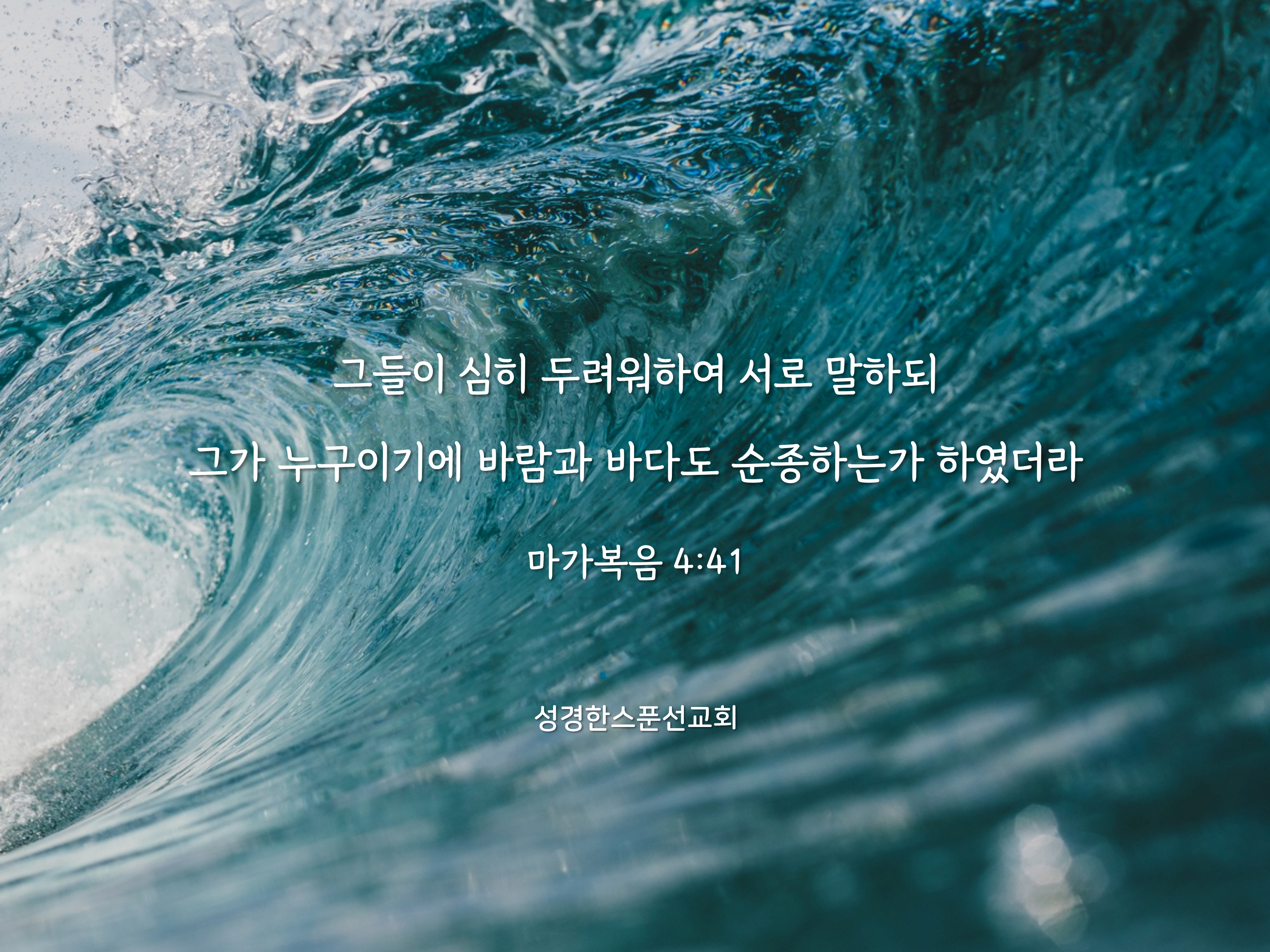 🔅오늘의 성경 한스푼/말씀카드 그들이 심히 두려워하여 서로 말하되 그가 누구이기에 바람과 바다도 순종하는가 하였더라 bibleonespoon 2024. 2. 19. 07:39 공유하기 게시글 관리 성경한스푼선교회 '🔅오늘의 성경 한스푼/말씀카드' Related Articles 예수께서 이르시되 딸아 네 믿음이 너를 구원하였으니 평안히 가라 네 병에서 놓여 건강할지어다 그에게 이르시되 집으로 돌아가 주께서 네게 어떻게 큰 일을 행하사 너를 불쌍히 여기신 것을 네 가족에게 알리라 하시니 하나님의 나라는 사람이 씨를 땅에 뿌림과 같으니 그가 밤낮 자고 깨고 하는 중에 씨가 나서 자라되 어떻게 그리 되는지를 알지 못하느니라 더러는 좋은 땅에 떨어지매 자라 무성하여 결실하였으니 삼십 배나 육십 배나 백 배가 되었으니라 하시고
