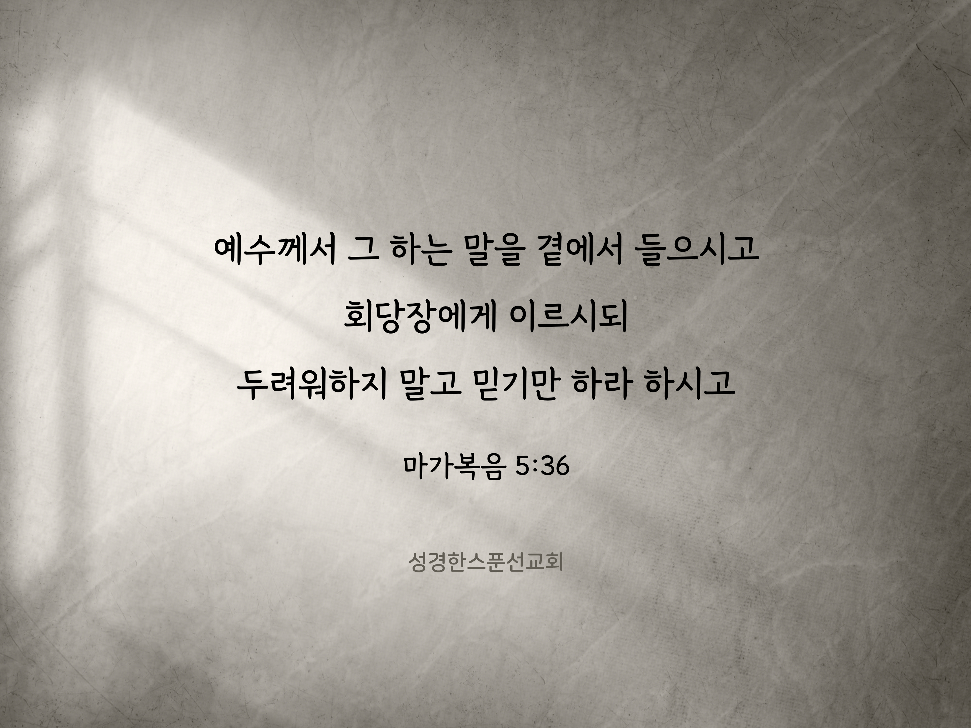 🔅오늘의 성경 한스푼/말씀카드 예수께서 그 하는 말을 곁에서 들으시고 회당장에게 이르시되 두려워하지 말고 믿기만 하라 하시고 bibleonespoon 2024. 2. 22. 08:26 공유하기 게시글 관리 성경한스푼선교회 '🔅오늘의 성경 한스푼/말씀카드' Related Articles 예수께서 곧 그들에게 말씀하여 이르시되 안심하라 내니 두려워하지 말라 이 사람이 마리아의 아들 목수가 아니냐 야고보와 요셉과 유다와 시몬의 형제가 아니냐 그 누이들이 우리와 함께 여기 있지 아니하냐 하고 예수를 배척한지라 예수께서 이르시되 딸아 네 믿음이 너를 구원하였으니 평안히 가라 네 병에서 놓여 건강할지어다 그에게 이르시되 집으로 돌아가 주께서 네게 어떻게 큰 일을 행하사 너를 불쌍히 여기신 것을 네 가족에게 알리라 하시니