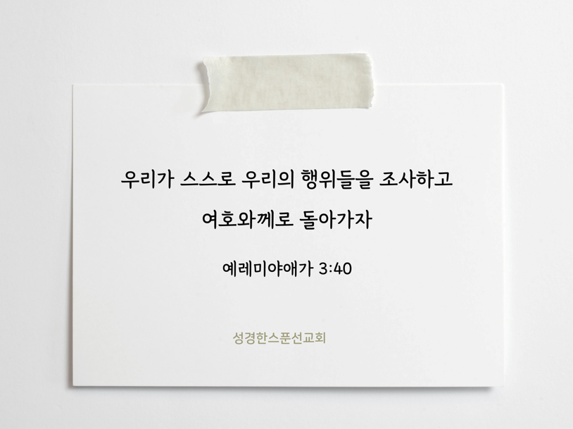 🔅오늘의 성경 한스푼/말씀카드 여호와께 돌아가자 bibleonespoon 2024. 10. 24. 13:19 공유하기 게시글 관리 성경한스푼선교회 '🔅오늘의 성경 한스푼/말씀카드' Related Articles 주께서 이미 나의 음성을 들으셨사오니 내 고초와 재난 곧 쑥과 담즙을 기억하소서 네 하나님 여호와께 서원하거든 갚기를 더디하지 말라 네 형제의 나귀나 소가 길에 넘어진 것을 보거든 못 본 체하지 말고 너는 반드시 형제를 도와 그것들을 일으킬지니라