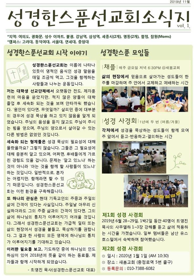 🔅성경한스푼 소개/뉴스레터 News Letter 성경한스푼 소식지 vol.1 bibleonespoon 2020. 2. 3. 21:10 Page 1 Page 2 성경한스푼 카카오채널 추가하여 소식받기ID: bibleonespoon 공유하기 게시글 관리 성경한스푼선교회