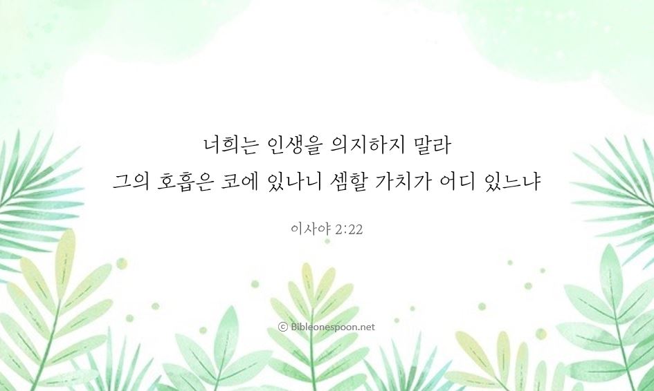22 "너희는 사람을 의지하지 말아라. 그의 숨이 코에 달려 있으니, 수에 셈할 가치가 어디에 있느냐?"
