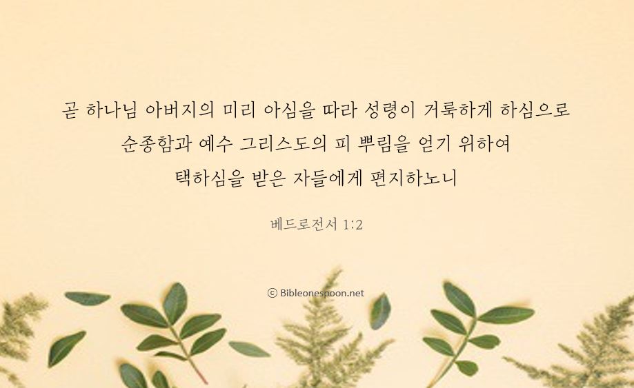 2 하나님 아버지께서 여러분을 미리 아시고 성령으로 거룩하게 해 주셔서, 여러분은 순종하게 되고, 예수 그리스도의 피 뿌림을 받게 되었습니다. 여러분에게 은혜와 평화가 더욱 가득 차기를 빕니다.