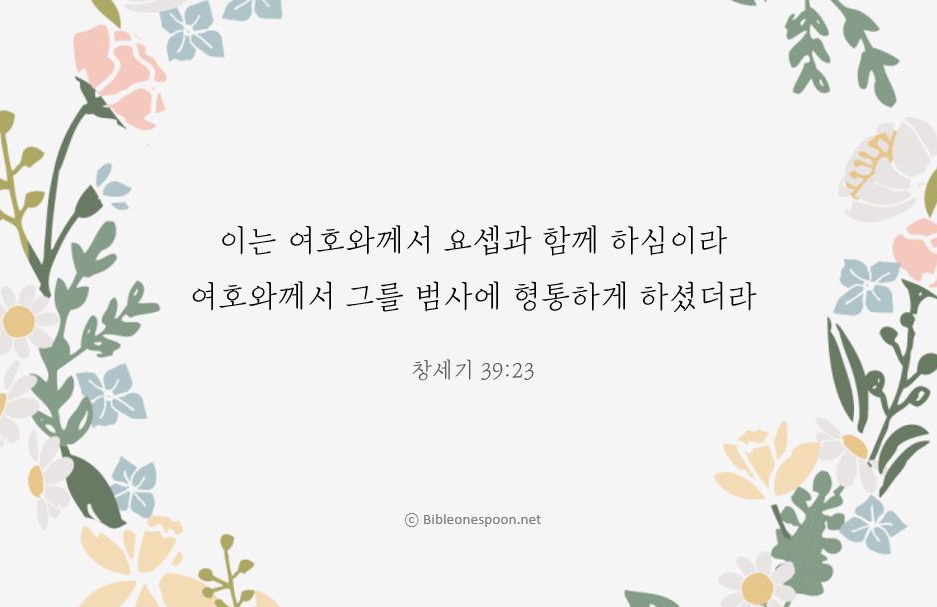 [창39:23, 새번역] 간수장은 요셉에게 모든 일을 맡기고, 아무것도 간섭하지 않았다. 그렇게 된 것은 주님께서 요셉과 함께 계시기 때문이며, 주님께서 요셉을 돌보셔서, 그가 하는 일은 무엇이나 다 잘 되게 해주셨기 때문이다.