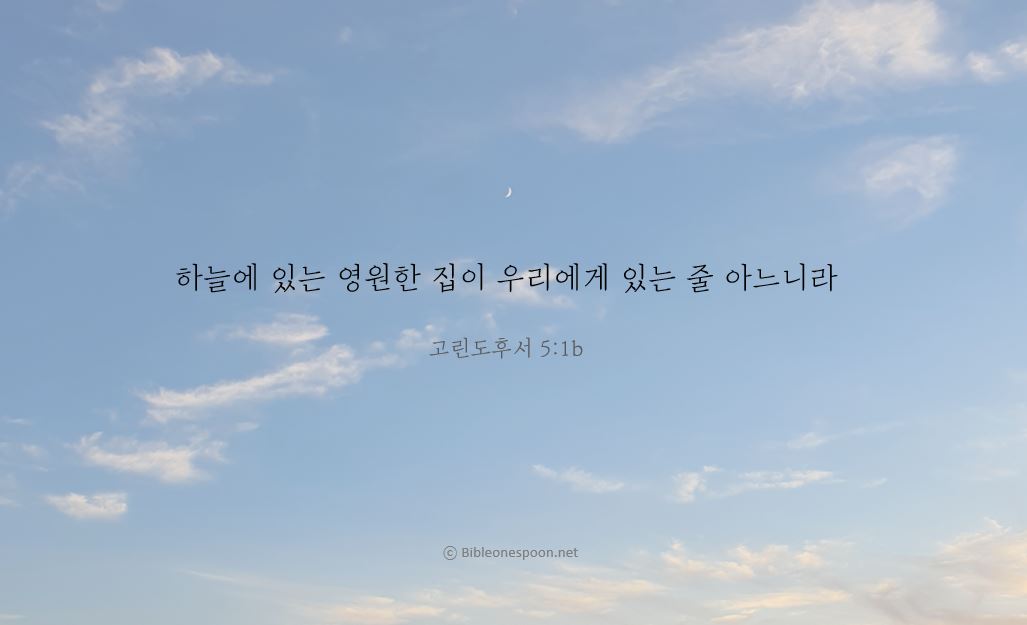 1 땅에 있는 우리의 장막집이 무너지면, 하나님께서 지으신 집, 곧 사람의 손으로 지은 것이 아니라 하늘에 있는 영원한 집이 우리에게 있는 줄 압니다.