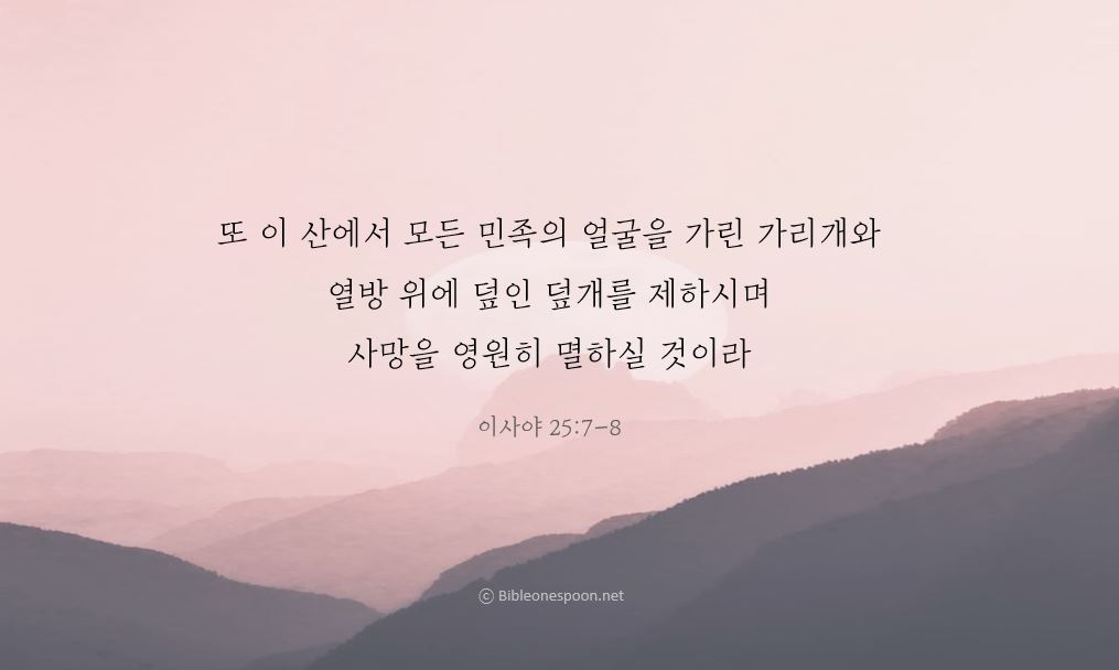 8 주님께서 죽음을 영원히 멸하신다. 주 하나님께서 모든 사람의 얼굴에서 눈물을 말끔히 닦아 주신다. 그의 백성이 온 세상에서 당한 수치를 없애 주신다. 이것은 주님께서 하신 말씀이다.
