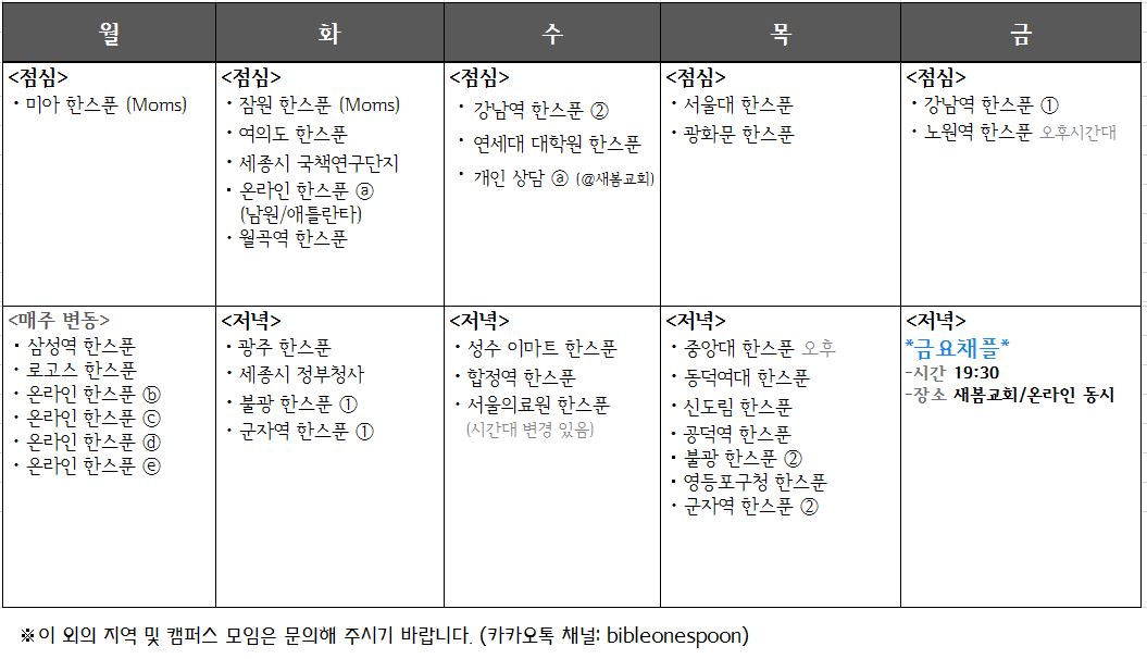 🔅모임과 활동/→ 소그룹 지역&시간 한눈에 보기