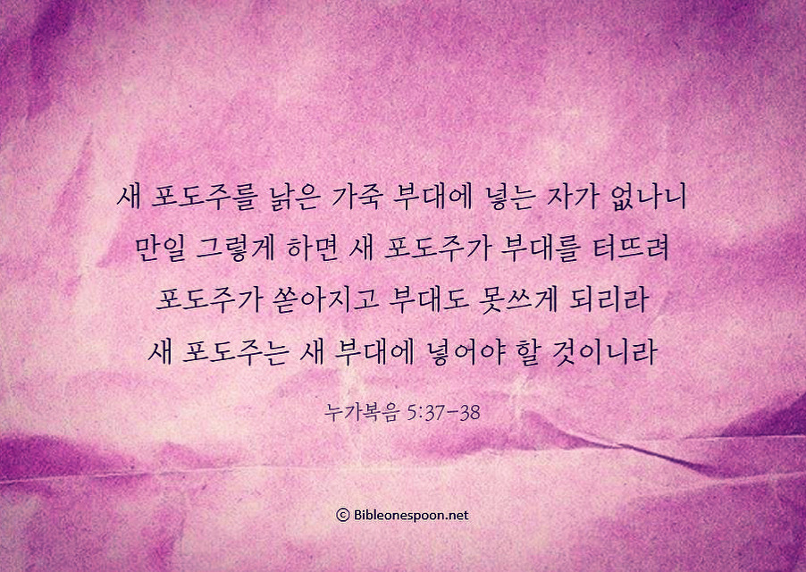 39 묵은 포도주를 마시고 나서, 새 포도주를 원하는 사람은 없다. 묵은 포도주를 마신 사람은 묵은 것이 좋다고 한다."
