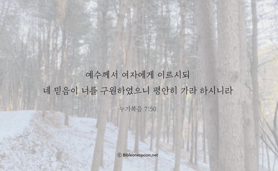 50 그러나 예수께서는 그 여자에게 말씀하셨다. "네 믿음이 너를 구원하였다. 평안히 가거라."