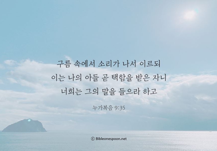 35 그리고 구름 속에서 소리가 났다. "이는 내 아들이요, 내가 택한 자다. 너희는 그의 말을 들어라."