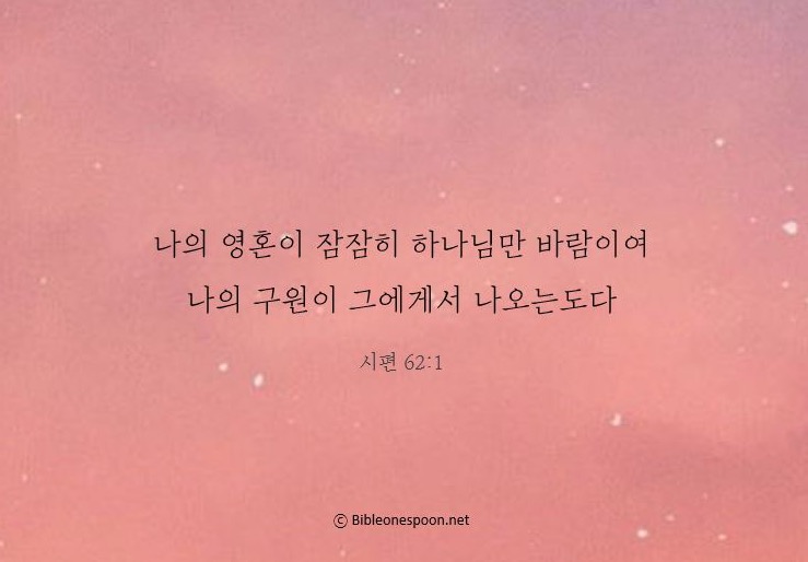 1 내 영혼이 잠잠히 하나님만을 기다림은 나의 구원이 그에게서만 나오기 때문이다.