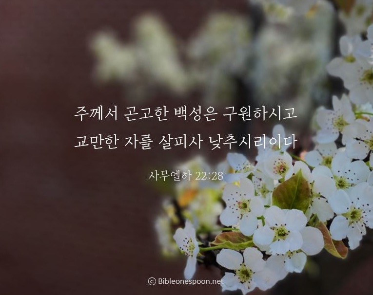 28 주님께서는 불쌍한 백성은 구하여 주시고, 교만한 사람은 낮추십니다.
