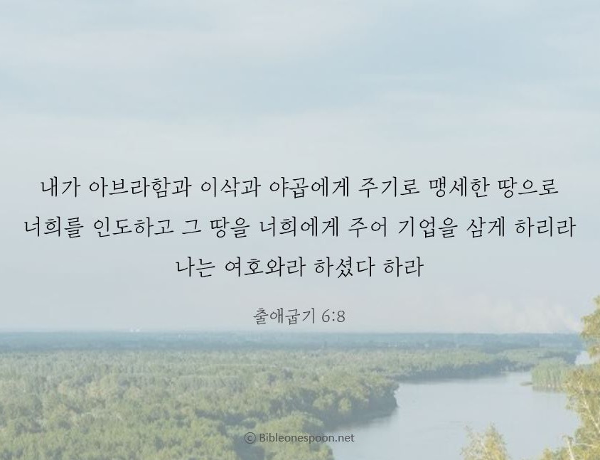 8 내가, 아브라함과 이삭과 야곱에게 주기로 손을 들어 맹세한 그 땅으로 너희를 데리고 가서, 그 땅을 너희에게 주어, 너희의 소유가 되게 하겠다. 나는 주다.'"
