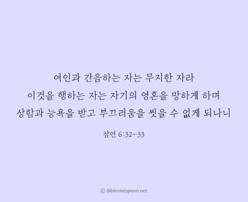 32 남의 아내와 간음하는 사람은 생각이 모자라는 사람이다. 자기 영혼을 망치려는 사람만이 그런 일을 한다.