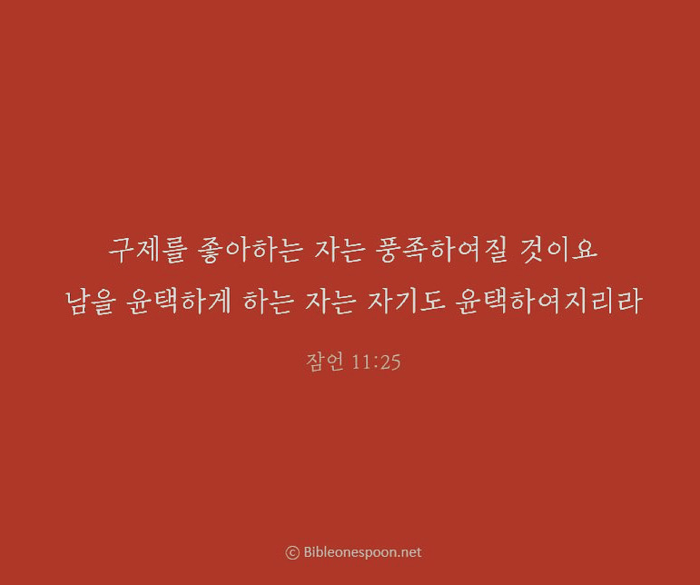 25 남에게 베풀기를 좋아하는 사람이 부유해 지고, 남에게 마실 물을 주면, 자신도 갈증을 면한다.
