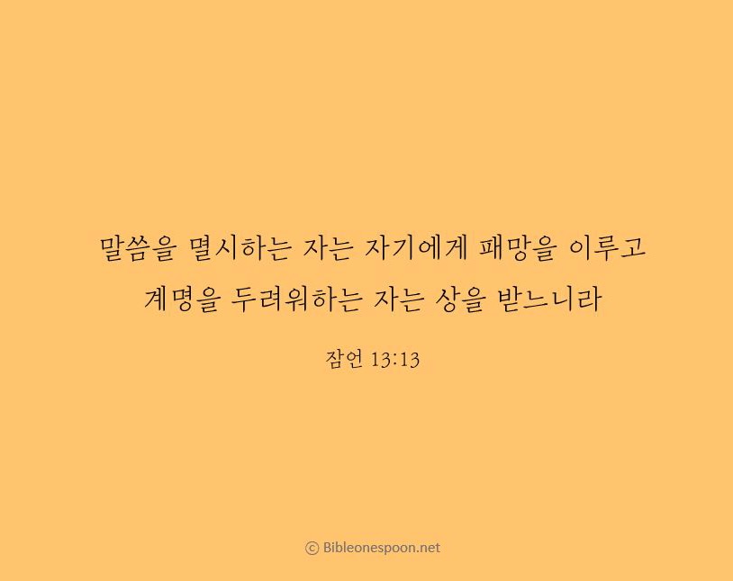 [잠13:13, 새번역] 말씀을 멸시하는 사람은 스스로 망하지만, 계명을 두려워하는 사람은 상을 받는다.
