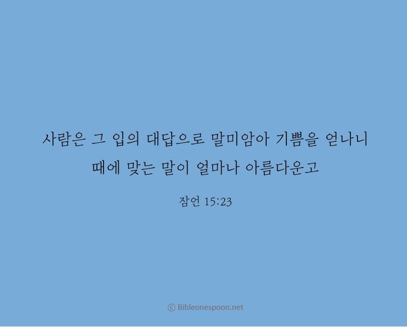 23 적절한 대답은 사람을 기쁘게 하니, 알맞은 말이 제때에 나오면 참 즐겁다.