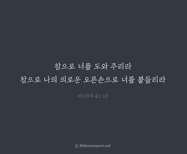 10 내가 너와 함께 있으니, 두려워하지 말아라. 내가 너의 하나님이니, 떨지 말아라. 내가 너를 강하게 하겠다. 내가 너를 도와주고, 내 승리의 오른팔로 너를 붙들어 주겠다.