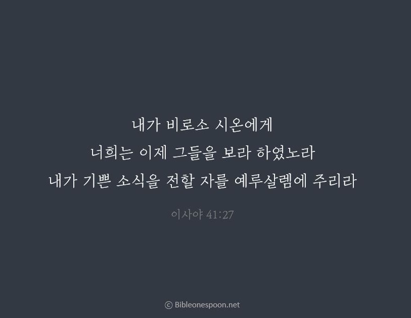 27 "나 주가 비로소 처음부터 시온에게 알렸다. '이런 일들을 보아라' 하고 말하였다. 내가 기쁜 소식을 전할 사람을 예루살렘에 보냈다.