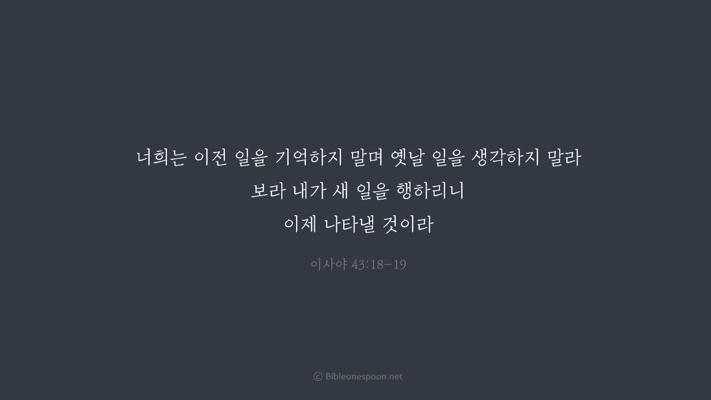 18 너희는 지나간 일을 기억하려고 하지 말며, 옛일을 생각하지 말아라.