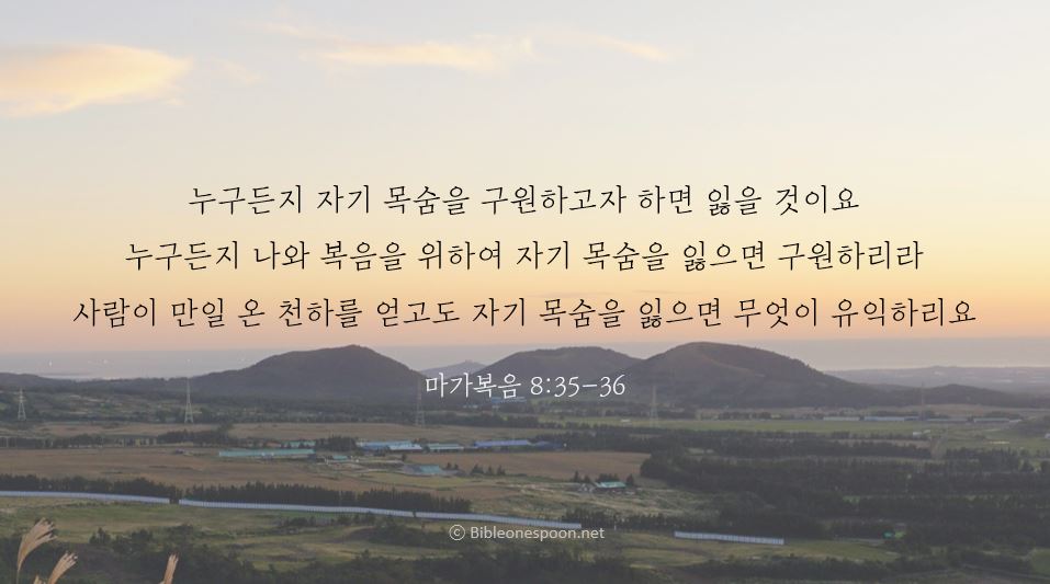🔅오늘의 성경 한스푼/말씀카드 누구든지 자기 목숨을 bibleonespoon 2020. 3. 23. 23:40 핸드폰 배경화면, SNS 프로필 사진, 암송카드 등 개인적인 용도로는 자유롭게 활용하셔도 좋습니다 ♡ 공유하기 게시글 관리 성경한스푼선교회 '🔅오늘의 성경 한스푼/말씀카드' Related Articles 세례요한이 광야에 이르러 만물보다 거짓되고 하늘을 우러러 탄식하시며 여인이 어찌 그 젖 먹는