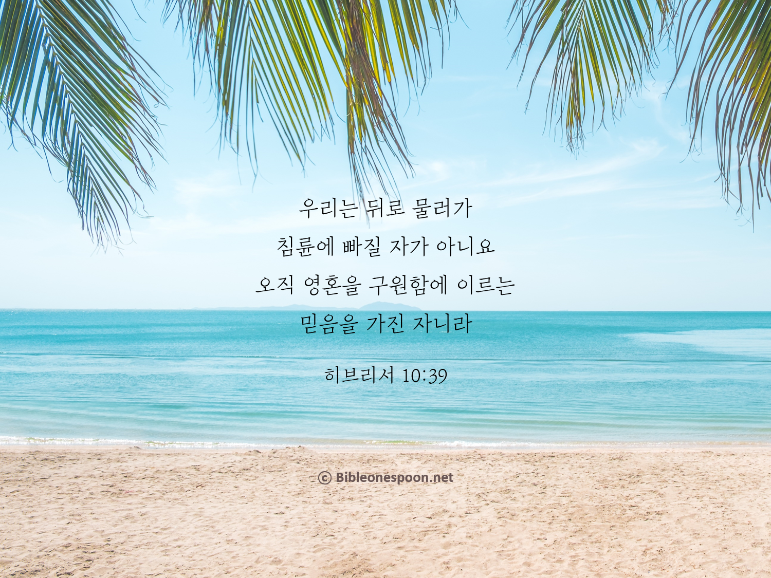 🔅오늘의 성경 한스푼/말씀카드 우리는 뒤로 물러가 침륜에 빠질 자가 아니요 bibleonespoon 2022. 7. 18. 07:37 핸드폰 배경화면, SNS 프로필 사진, 암송카드 등 개인적인 용도로는 자유롭게 활용하셔도 좋습니다. (2-3초간 꾹 누르시면 이미지 저장이 가능합니다♡) 공유하기 게시글 관리 성경한스푼선교회 '🔅오늘의 성경 한스푼/말씀카드' Related Articles 저희가 이제는 더 나은 본향을 사모하니 믿음은 바라는 것들의 실상이요 보지 못하는 것들의 증거니 많은 사람의 죄를 담당하시려고 단번에 드리신바 되셨고 흠 없는 자기를 하나님께 드린 그리스도의 피가