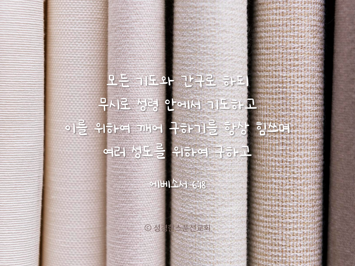 🔅오늘의 성경 한스푼/말씀카드 모든 기도와 간구로 하되 무시로 성령 안에서 기도하고 이를 위하여 깨어 구하기를 항상 힘쓰며 bibleonespoon 2022. 9. 16. 08:11 핸드폰 배경화면, SNS 프로필 사진, 암송카드 등 개인적인 용도로는 자유롭게 활용하셔도 좋습니다. (2-3초간 꾹 누르시면 이미지 저장이 가능합니다♡) 공유하기 게시글 관리 성경한스푼선교회 '🔅오늘의 성경 한스푼/말씀카드' Related Articles 예수 안에서 함께 지어져 가느니라 그 후에 다윗이 여호와께 물어 가로되 눈가림만 하여 사람을 기쁘게 하는 자처럼 하지 말고 자기의 아내 사랑하기를 자기 같이 하고 아내도 그 남편을 경외하라