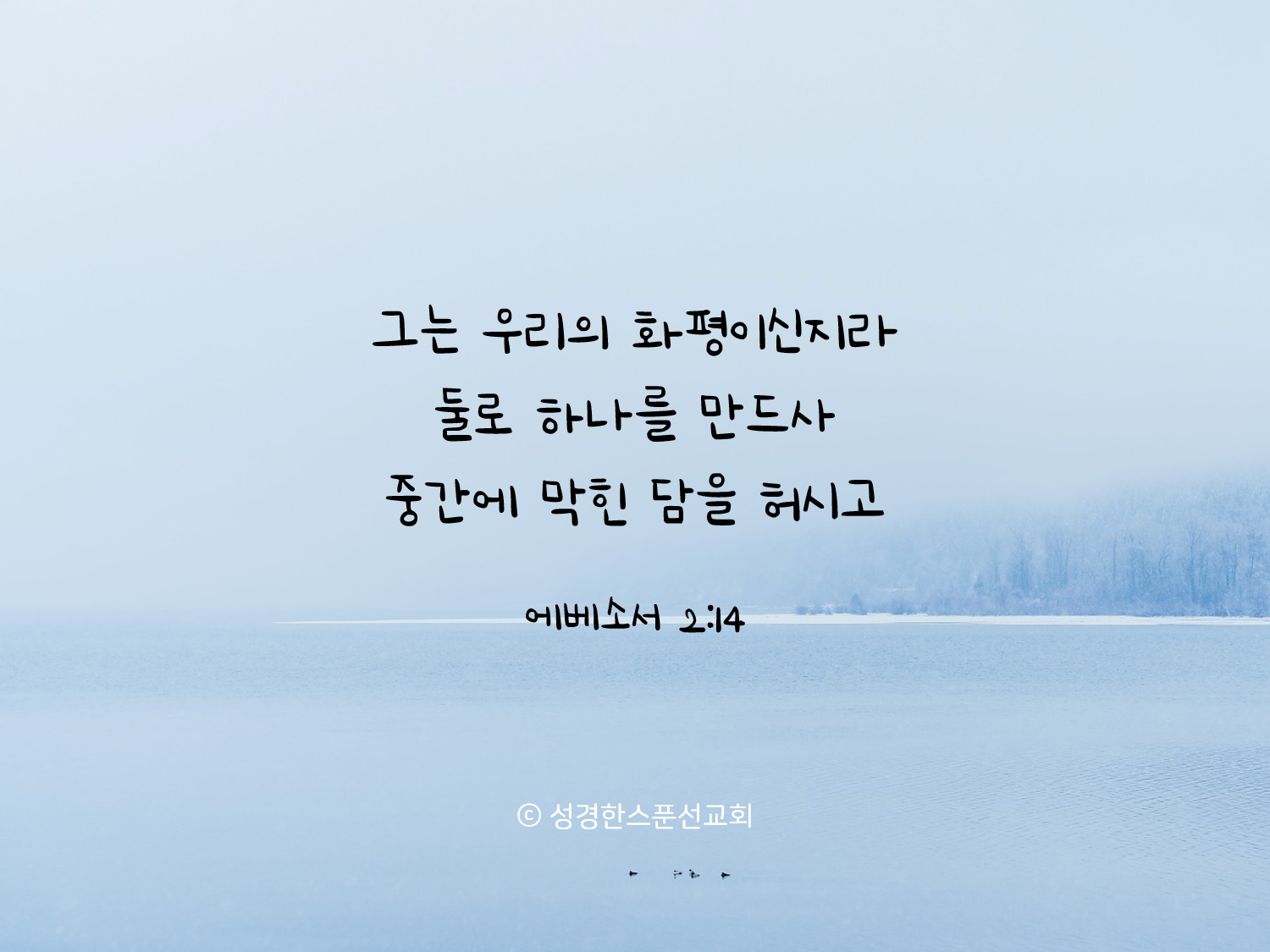 카테고리 없음 그는 우리의 화평이신지라 둘로 하나를 만드사 중간에 막힌 담을 허시고 bibleonespoon 2022. 9. 22. 08:05 핸드폰 배경화면, SNS 프로필 사진, 암송카드 등 개인적인 용도로는 자유롭게 활용하셔도 좋습니다. (2-3초간 꾹 누르시면 이미지 저장이 가능합니다♡) 공유하기 게시글 관리 성경한스푼선교회