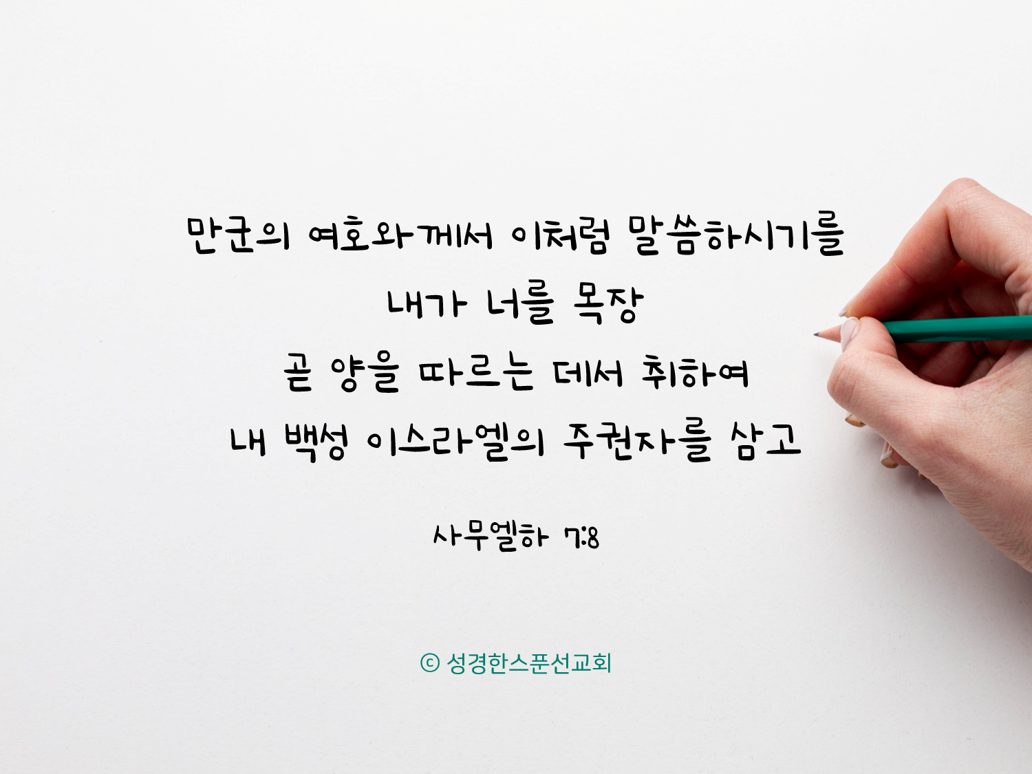 내가 너를 목장 곧 양을 따르는 데서 취하여 내 백성 이스라엘의 주권자를 삼고