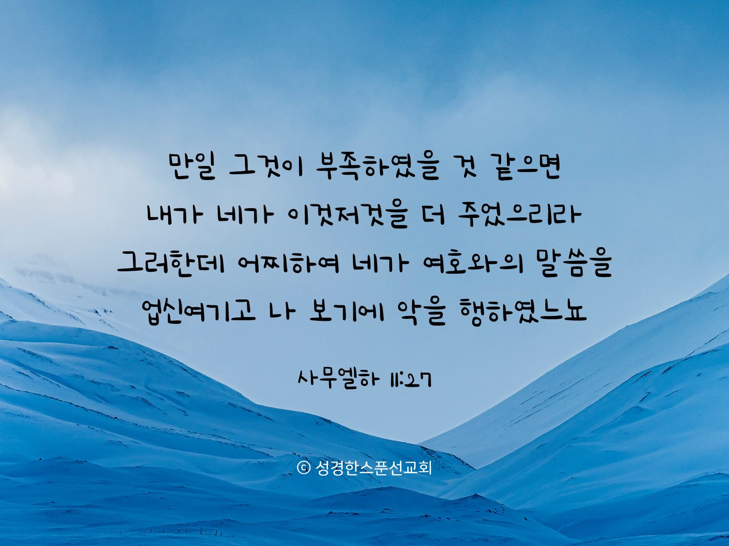 🔅오늘의 성경 한스푼/말씀카드 그러한데 어찌하여 네가 여호와의 말씀을 업신여기고 나 보기에 악으 행하였느뇨 bibleonespoon 2022. 10. 6. 07:17 핸드폰 배경화면, SNS 프로필 사진, 암송카드 등 개인적인 용도로는 자유롭게 활용하셔도 좋습니다. (2-3초간 꾹 누르시면 이미지 저장이 가능합니다♡) 공유하기 게시글 관리 성경한스푼선교회 '🔅오늘의 성경 한스푼/말씀카드' Related Articles 만일 우리가 우리 죄를 자백하면 그는 미쁘시고 의로우사 우리 죄를 사하시며 저가 만일 죄를 범하면 내가 사람 막대기와 인생 채찍으로 징계하려니와 다윗의 소위가 여호와 보시기에 악하였더라 오직 주 예수 그리스도로 옷 입고 정욕을 위하여 육신의 일을 도모하지 말라