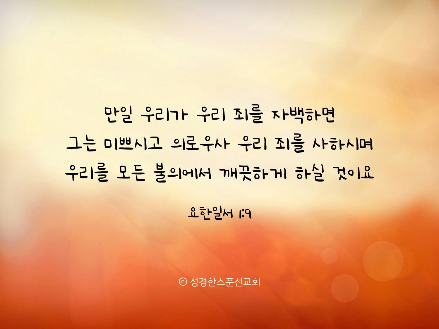 🔅오늘의 성경 한스푼/말씀카드 만일 우리가 우리 죄를 자백하면 그는 미쁘시고 의로우사 우리 죄를 사하시며 bibleonespoon 2022. 10. 11. 08:10 핸드폰 배경화면, SNS 프로필 사진, 암송카드 등 개인적인 용도로는 자유롭게 활용하셔도 좋습니다. (2-3초간 꾹 누르시면 이미지 저장이 가능합니다♡) 공유하기 게시글 관리 성경한스푼선교회 '🔅오늘의 성경 한스푼/말씀카드' Related Articles 내 주 왕께서 어느 곳에 계시든지 무론 사생하고 종도 그곳에 있겠나이다 내가 이새의 아들 다윗을 만나니 내 마음에 합한 사람이라 저가 만일 죄를 범하면 내가 사람 막대기와 인생 채찍으로 징계하려니와 그러한데 어찌하여 네가 여호와의 말씀을 업신여기고 나 보기에 악으 행하였느뇨