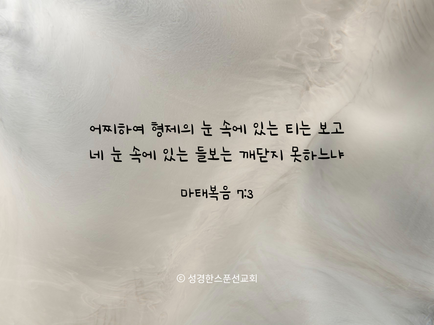 🔅오늘의 성경 한스푼/말씀카드 어찌하여 형제의 눈 속에 있는 티는 보고 네 눈 속에 있는 들보는 깨닫지 못하느냐 bibleonespoon 2023. 2. 1. 08:05 핸드폰 배경화면, SNS 프로필 사진, 암송카드 등 개인적인 용도로는 자유롭게 활용하셔도 좋습니다. (2-3초간 꾹 누르시면 이미지 저장이 가능합니다♡) 공유하기 게시글 관리 성경한스푼선교회 '🔅오늘의 성경 한스푼/말씀카드' Related Articles 그러므로 누구든지 나의 이 말을 듣고 행하는 자는 그 집을 반석 위에 지은 지혜로운 사람 같으리 생명으로 인도하는 문은 좁고 길이 협착하여 찾는 이가 적음이니라 너희는 먼저 그 나라와 그의 의를 구하라 그리하면 이 모든 것을 너희에게 더하시리라 뜻이 하늘에서 이룬 것 같이 땅에서도 이루어지이다