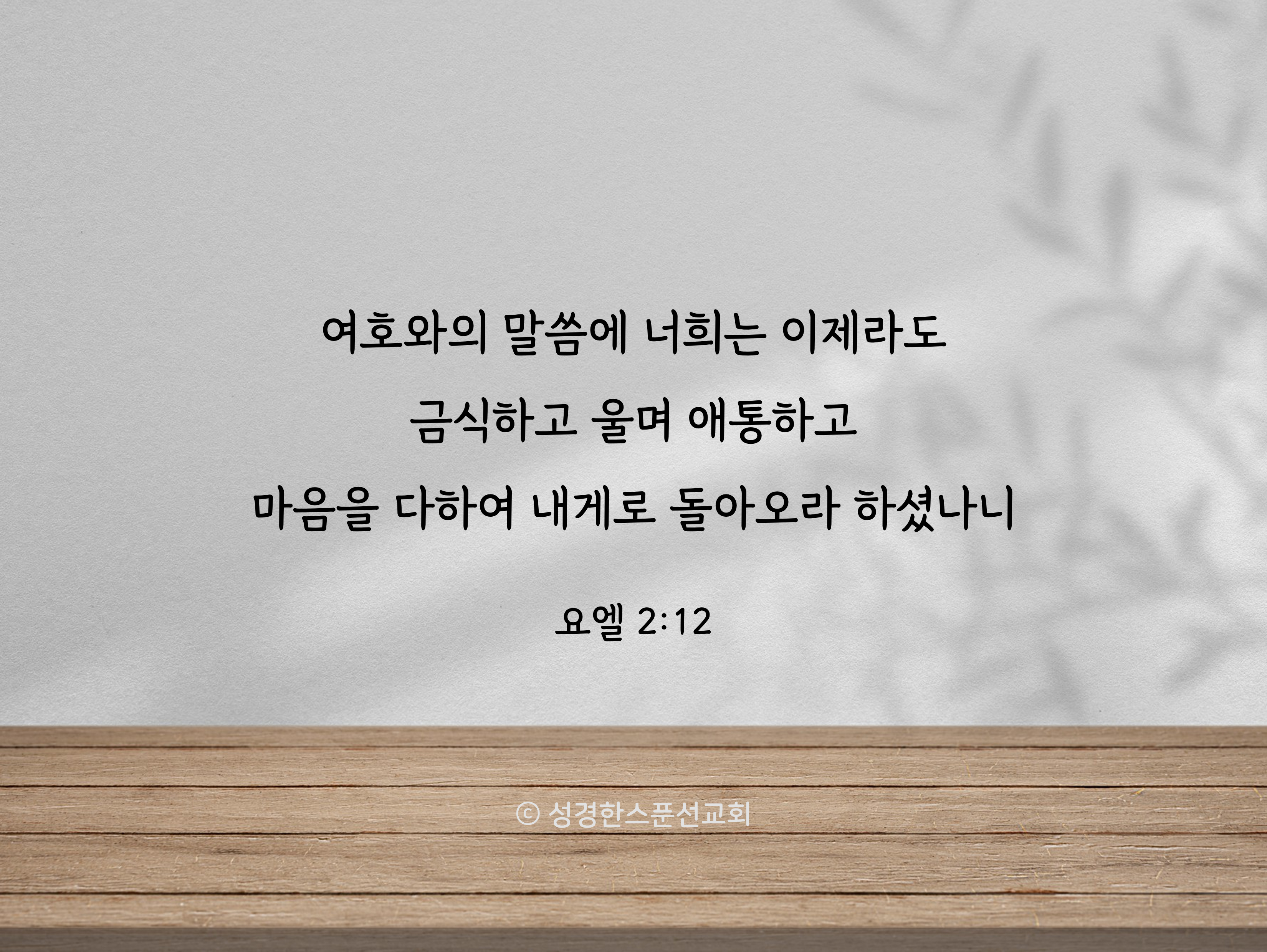 🔅오늘의 성경 한스푼/말씀카드 너희는 이제라도 금식하고 울며 애통하고 마음을 다하여 내게로 돌아오라 bibleonespoon 2023. 3. 24. 08:12 핸드폰 배경화면, SNS 프로필 사진, 암송카드 등 개인적인 용도로는 자유롭게 활용하셔도 좋습니다. (2-3초간 꾹 누르시면 이미지 저장이 가능합니다♡) 공유하기 게시글 관리 성경한스푼선교회 '🔅오늘의 성경 한스푼/말씀카드' Related Articles 그런즉 깨어 있으라 너희는 그 날과 그 시를 알지 못하느니라 그러므로 깨어 있으라 어느 날에 너희 주가 임할는지 너희가 알지 못함이니 너는 먼저 안을 깨끗이 하라 그리하면 겉도 깨끗하리 누구든지 자기를 높이는 자는 낮아지고 누구든지 자기를 낮추는 자는 높아지리라